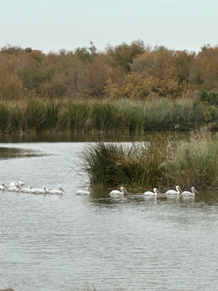 Seemed strange but cool to see a large group of American White Pelicans floating around in the desert. They apparently winter in this area.