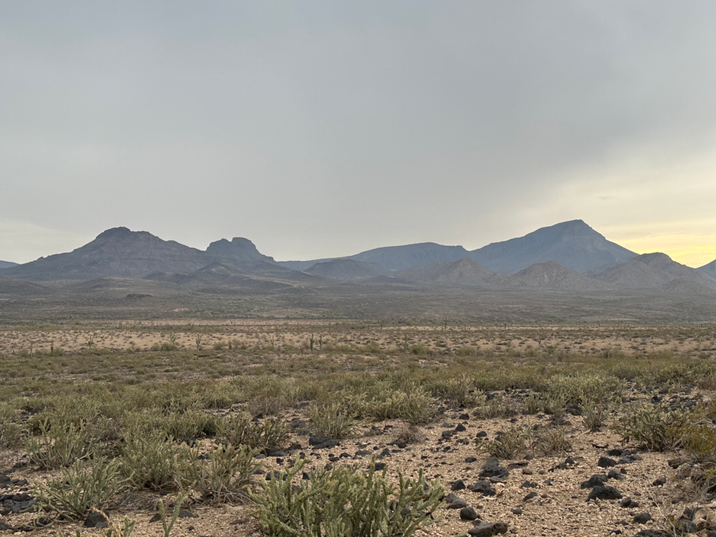 I finally found a nice spot to set up the tent on the edge of a wash just inside the Woolsey Peak Wlderness. The peak has been a prominent landmark for much of the day.