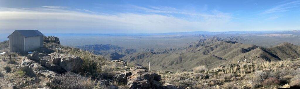 With the road/trail conditions improving with elevation, I continued to the summit of Harquahala Peak at nearly 5,700’, the highest peak in southwestern Arizona. The summit hosts a Smithsonian built astrophysical observatory with the purpose of measuring solar activity. Built in 1920, it is now abandoned.