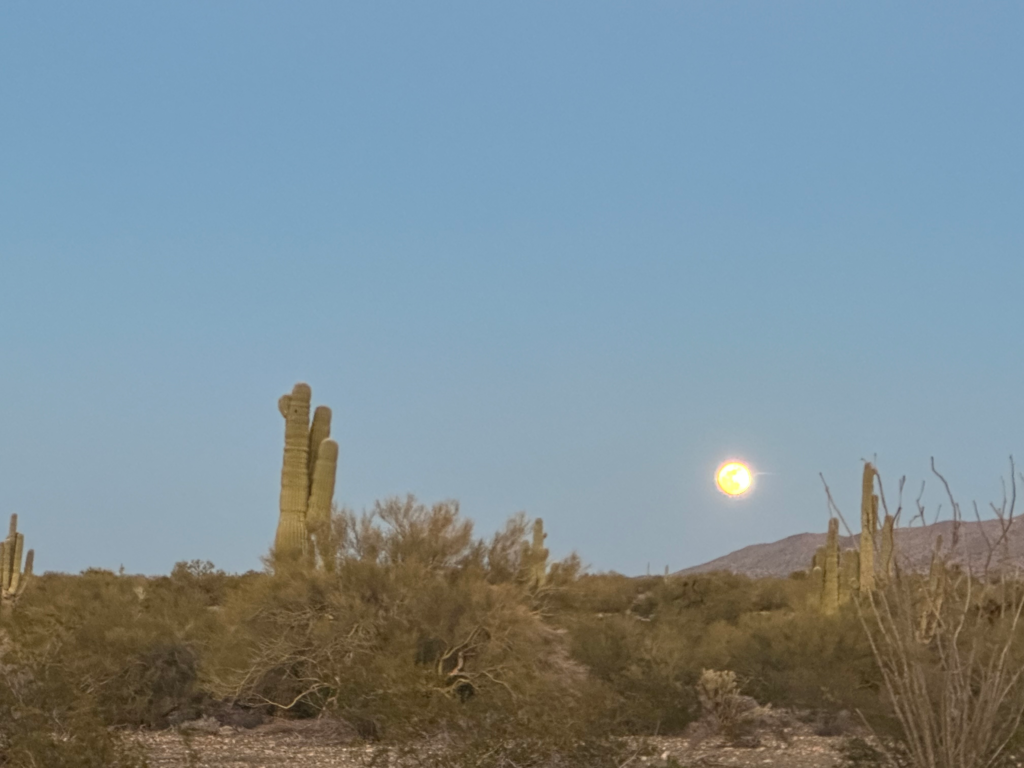 I gratefully camped nearby, rewarded with a nice sunset followed by a rising full moon.