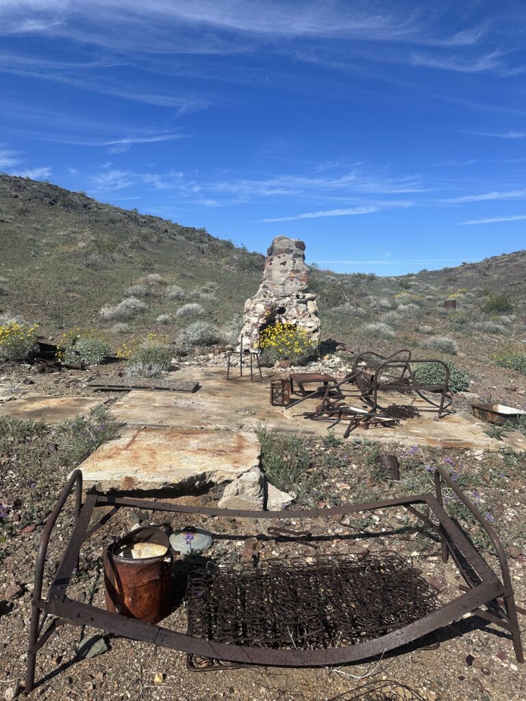 The name is derived from a 5,000’ granite monolith faintly, and with some imagination , resembling an old woman. I can see the forehead, mouth, chin and a little tongue sticking out. It is also where the Old Woman Meteorite weighing over 6,000 lbs was discovered in 1975, largest found in California and now on display in Barstow.