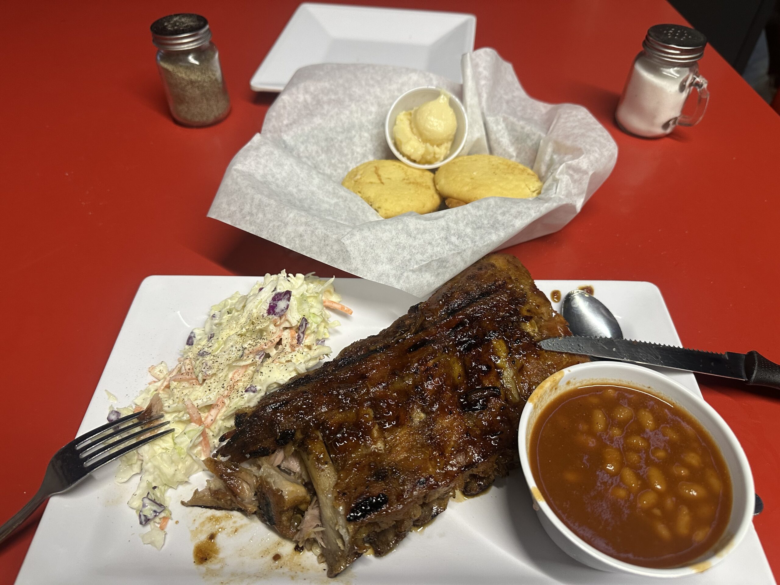 Despite 29 Palms being so spread out and only a few things close to the Holiday Inn Express, I found another good restaurant, the Rib Co., within walking distance and stuffed myself with a half rack of baby back ribs, cornbread, potato salad and an IPA. I did regret not getting the peach cobbler.