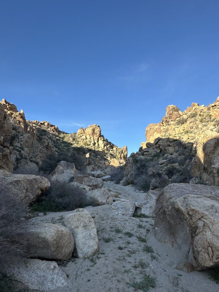 I eventually turned north onto the more popular Boy Scout Trail passing several reservable backcountry campsites before taking a short side trail to the Maze zone where I had planned to camp. Nice views and surrounded by granite boulder hills, I found a partially shaded spot to pitch my tent on my last night on the Desert Winter Thru-Hike although I plan to continue on to touch the PCT in a few days.