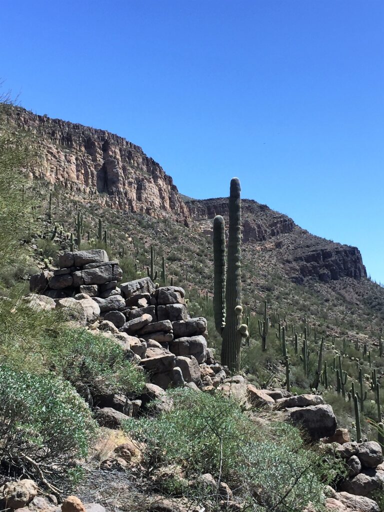 Walked past the Central Arizona College and up the road for two miles before turning northeast on a jeep track. I eventually exited into a dry wash that got narrower and narrower and wetter and wetter.