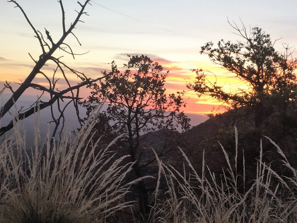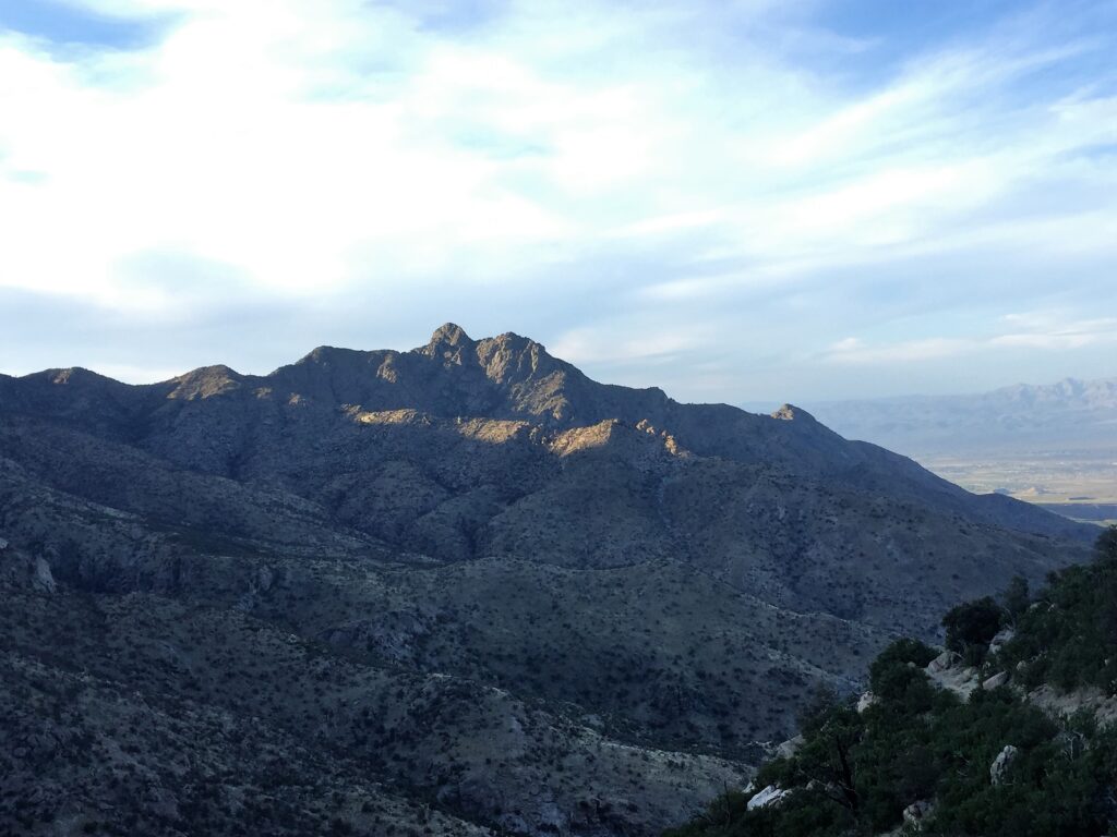 Finally up and over to rugged Marijilda Canyon, reaching the creek as the sun was going down. Too rocky to camp so continued on above the creek, finding a somewhat flat spot with less rock with the aid of my headlamp. Looking down on the lights of Safford tonight.