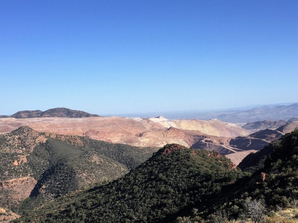 The next leg was the scenic, but never ending, mostly uphill Painted Bluffs Trail, up and down through several canyons and views of the Morenci Copper Mine.