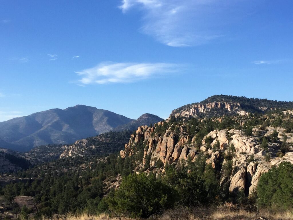 A long, steady and hot climb up the Wild Bunch Trail. You could just imagine old western movies being made here! I got water at the Morris Day Gap Tank and cistern and continued climbing to the head of Horse Canyon and the flank of Maple Peak. Enough for me, a bed of pine needles and pretty sunset.