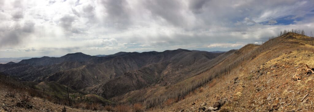 I headed down the other side eventually re-entering the burn zone and worse trail conditions.