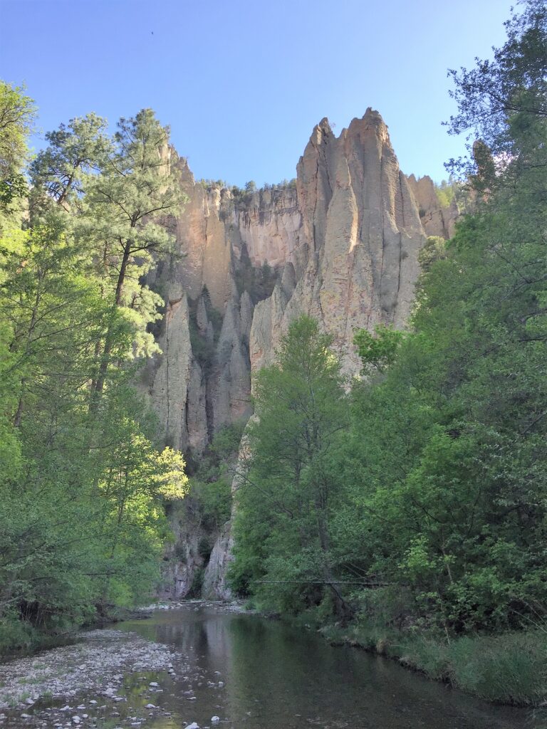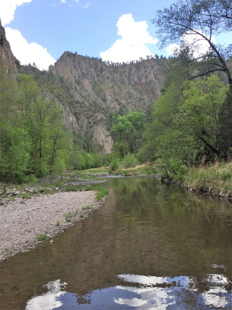 I headed off on a bright and sunny morning through the ponderosa pine forest to the White River. This river soon flowed into the West Fork Gila River. I heard turkeys gobbling but never saw them.
