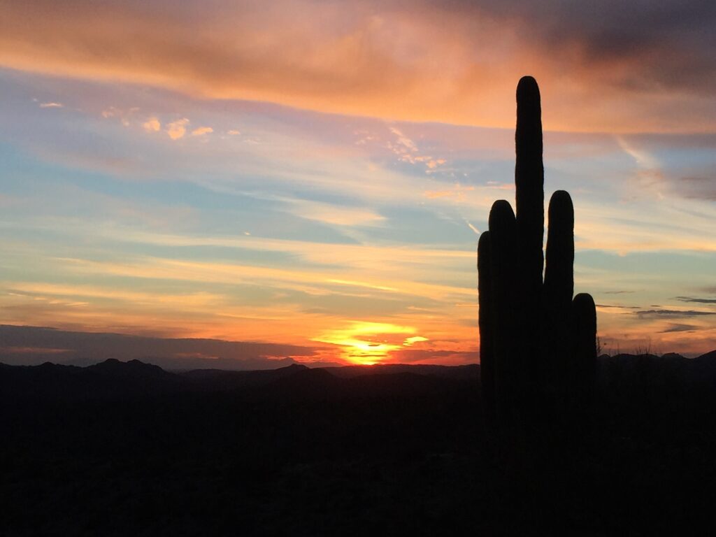 No further for me – a very pleasant evening with a beautiful sunset through a hill of tall saguaros.