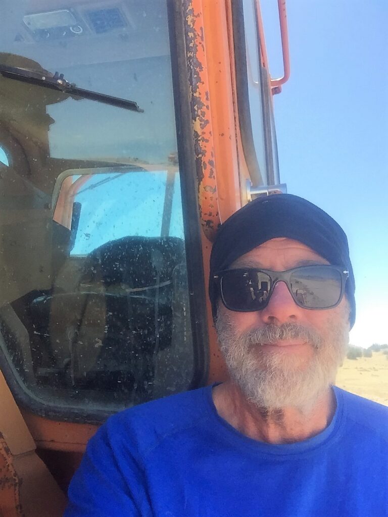 Only a few miles to get to Hwy 52, a dirt road, known to be a difficult hitch to Winston. My plan was to hopefully get a ride to town before the PO closes at 11am (Saturday hours). I walked down to a ranch residence that had an old Cat D7G dozer across the highway that I could use for shade.
