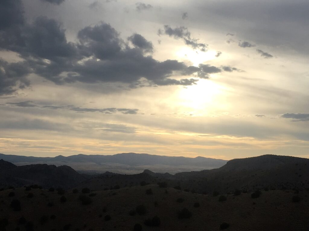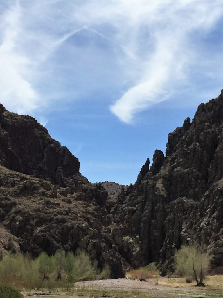 After a walk to the mouth of Monticello Box, today was spent hiking up washes. This including Ojo Caliente, a warm water spring, then cross-country across ridges in the foothills of the San Mateo Mountains.