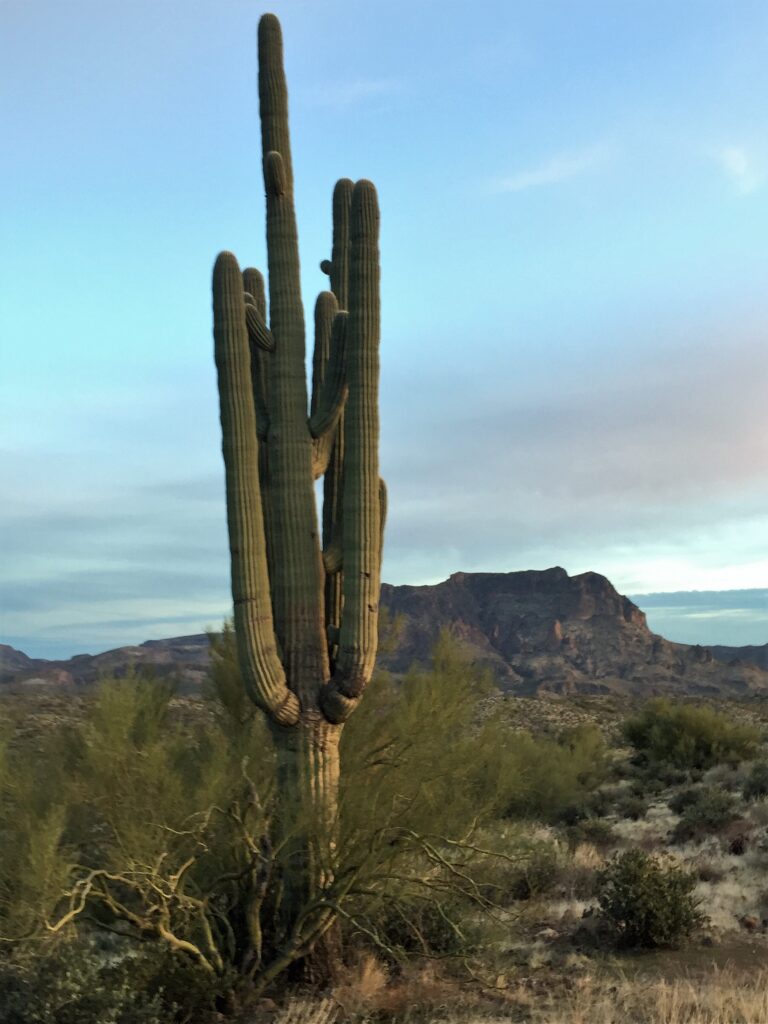 On the way down the hill, I surprised a large herd of mule deer, 14 in total, single file, running, jumping and hopping across the trail. Saw three more before I reached US Hwy 60.