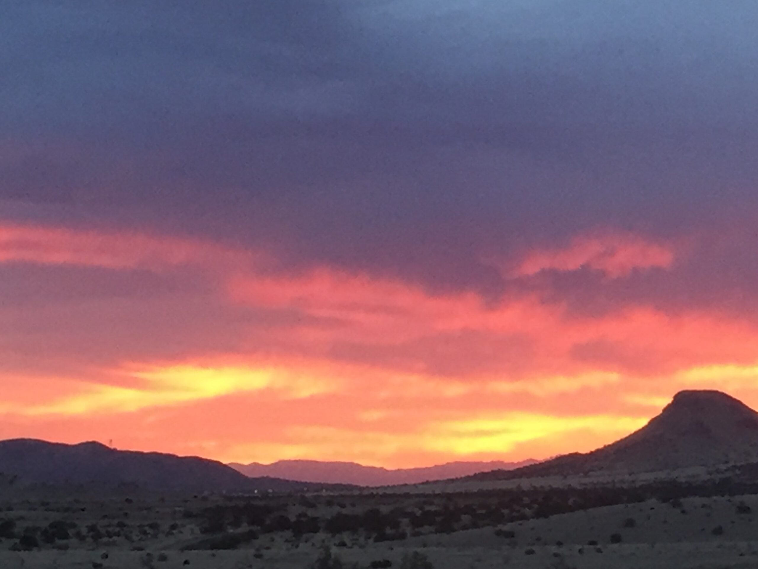 I woke up too early this morning – I guess anxious to get to town, maybe hunger. Hit the road with my headlamp to guide me but didn’t need it long. A beautiful, colorful sunrise coming into Magdalena – the sky looked like it was on fire.