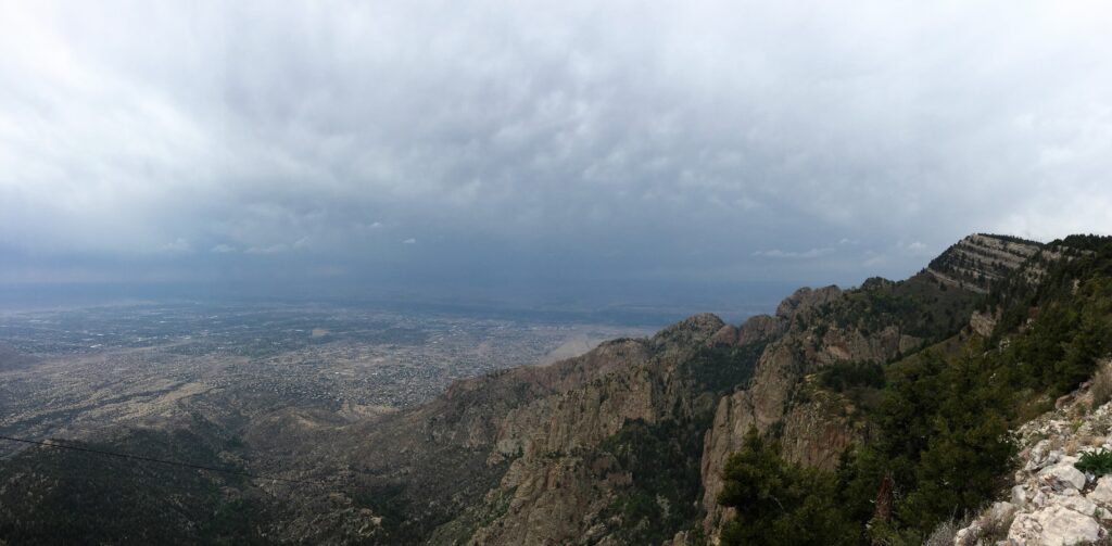 Great views of Albuquerque far below. Right after I bought a one-way ticket, a wild thunderstorm blew in and shut down the tram for over an hour due to high winds, lightning, rain and hail. My first real rain on the whole journey.