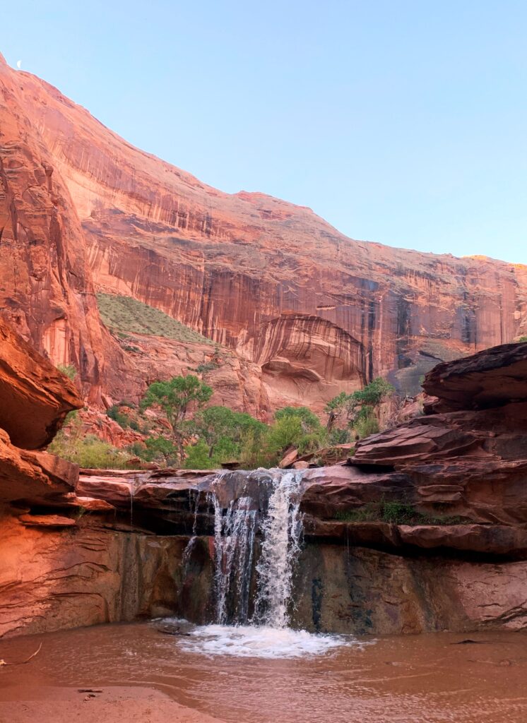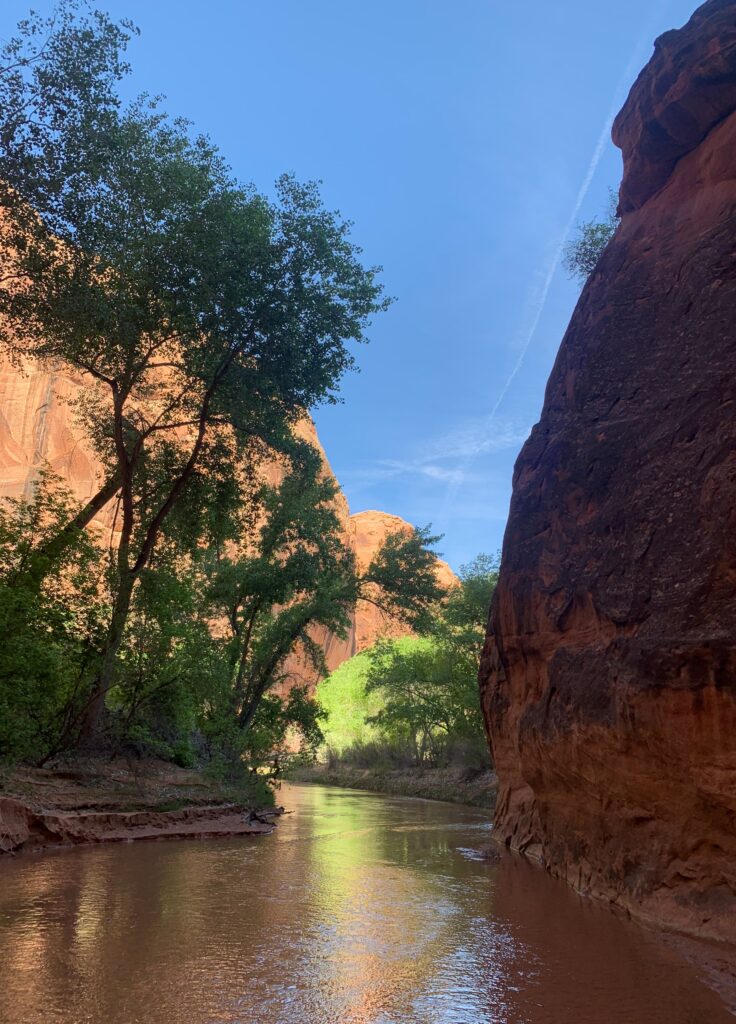 I can understand why Coyote Gulch is so popular. Accessible, narrow canyon, stream, waterfalls, and, to top it off, beautiful arches, Coyote Natural Bridge that you walk through and Jacob Hamlin Arch, that’s extra special because the canyon wraps around on itself. You see the front and back of the arch from the canyon floor. I felt like my neck was on a swivel most of the way up the canyon.