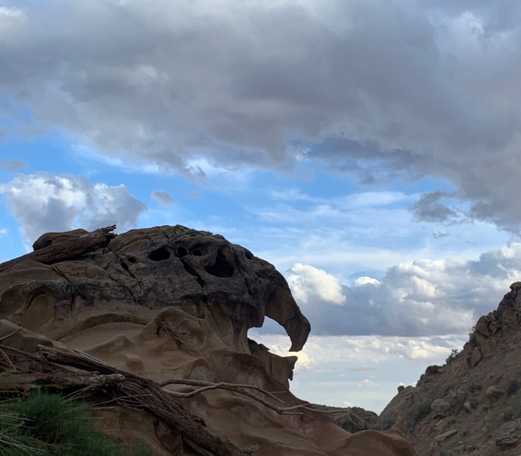 Finding a decent path through this sagebrush to Monday Canyon proved challenging. Zigzagging on whatever stock trails I could find. Headed down a narrow side canyon that dumped into Monday Canyon and followed it down for seven miles. No trail to speak of so slow going in the drainage, navigating around pouroffs and the boulder-choked sections.