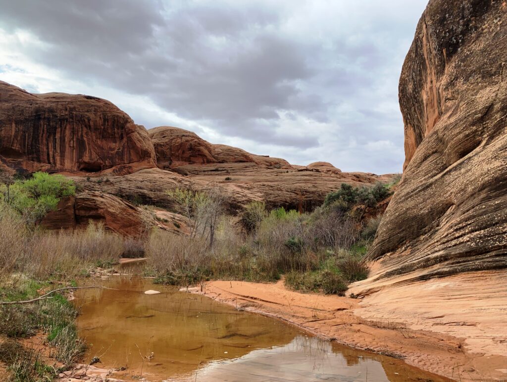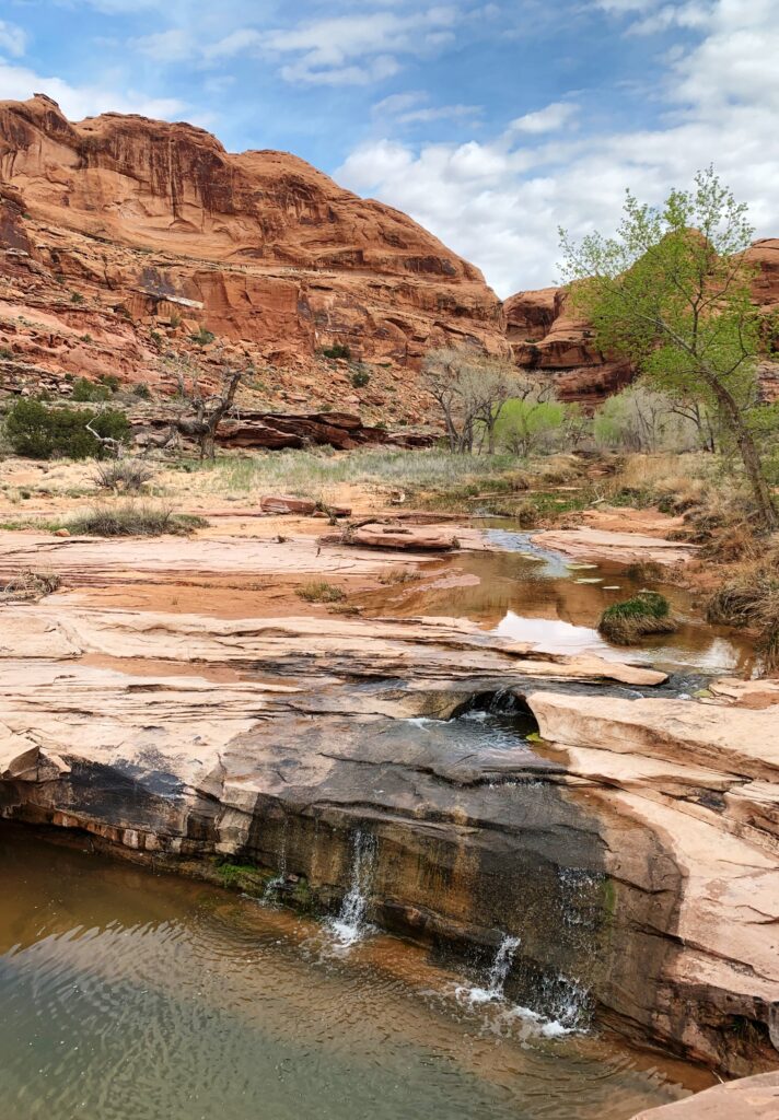 I continued working my way down Lower Courthouse Wash, mostly on a trail with easy water crossings. Steep canyon walls and cool rock formations all the down to Hwy 191.