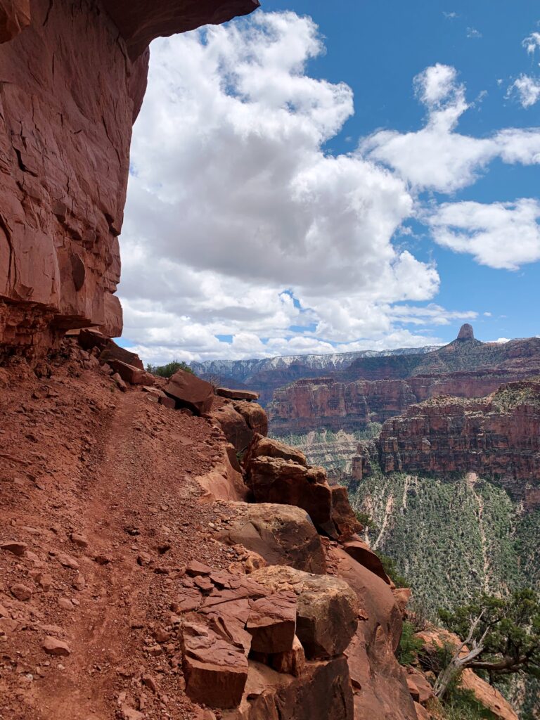 There’s a section where the trail narrows to a foot wide with a high sandstone wall on one side and a direct 100 ft drop on the other. Nankoweap Trail has the largest rim-to-river drop of 5,640 ft and is one of the longer trails.