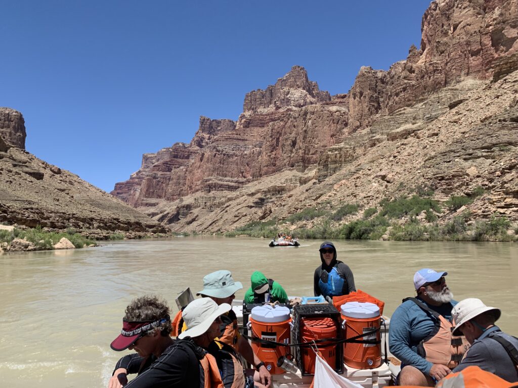 There was a use trail for the first four miles to Kwangut Creek which was helpful. The remaining five miles to the cross-over or ferry point would be mostly bushwhacking and a lot of rock hopping, not fun at all and painfully tedious. On the way, I saw a couple of rafts coming down the river. I quickly waded out into the Colorado and stuck my thumb out. To my surprise, one of the rafts made a beeline to my position and the river guide asked if I was OK. I was soon thankfully joining a commercial raft trip full of Tulane University professors and students.