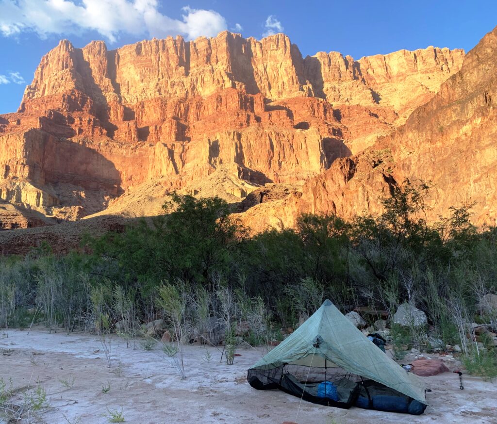 A warm, sunny day so running on empty when I got to the river. I quickly drank the first two liters I filtered. I camped adjacent to the impressive, but noisy rapids.