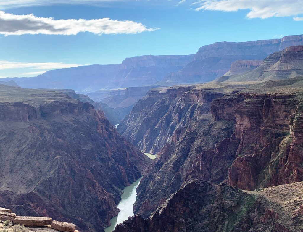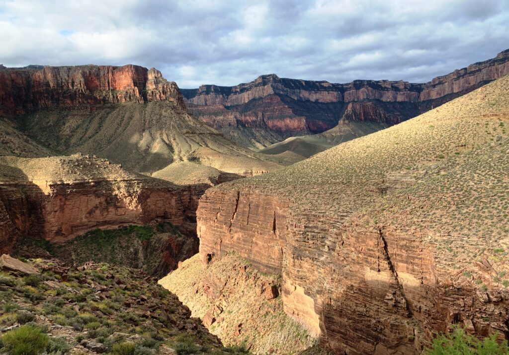 As it turned out, I was hiking along the same contour almost all the way to the South Kaibab Trail. Relatively flat, except dipping into and out of drainages. Got my last good views of the Colorado River far below and my last water at trickling Lonetree Creek.