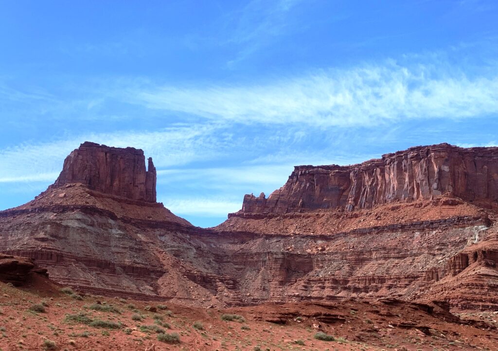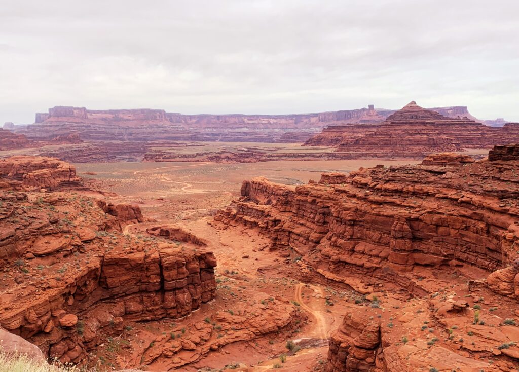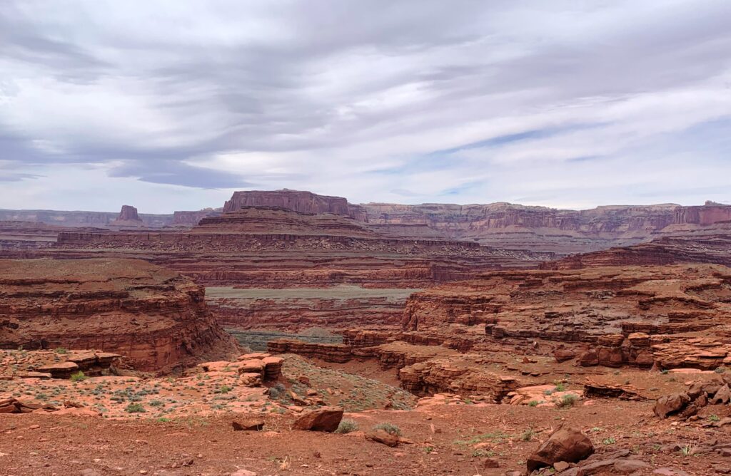 I bid farewell to a gracious host on a cool, overcast morning. I then heading south on a bench high above the Colorado River.