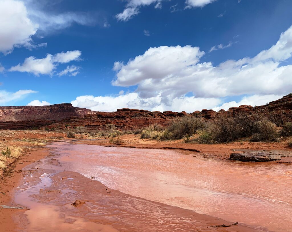 I eventually reached BLM’s Indian Creek Falls camping area and then Hwy 211 to Needles Outpost. In a rain squall, I got a quick ride to Needles Outpost where I got a campsite. Picked up my resupply box and tried to dry out a bit.