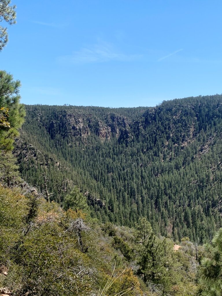 Headed south for several miles on a multitude of remote dirt roads ending in Corduroy Wash. I then crossed AZ Hwy 87 and started down the Pine Canyon Trail, a long switchbacked descent off the Mogollon Rim.