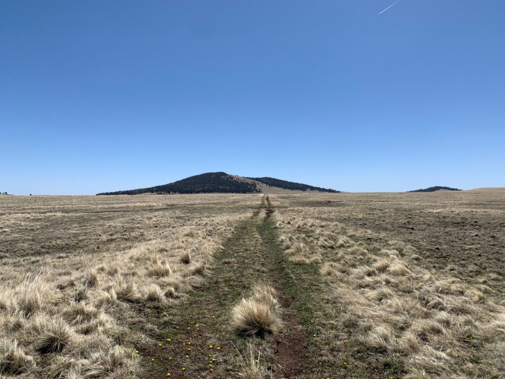 A brisk morning in the AZ high country. I started off following the boundary fence of the White Mountain Apache reservation. Hiked over a mountain before moving on through the forest and meadow landscape.