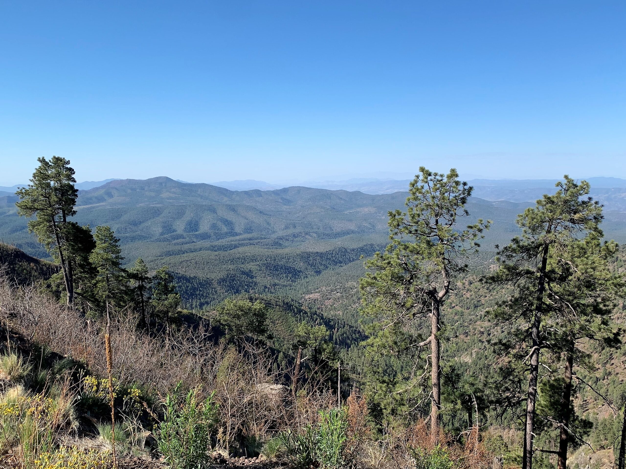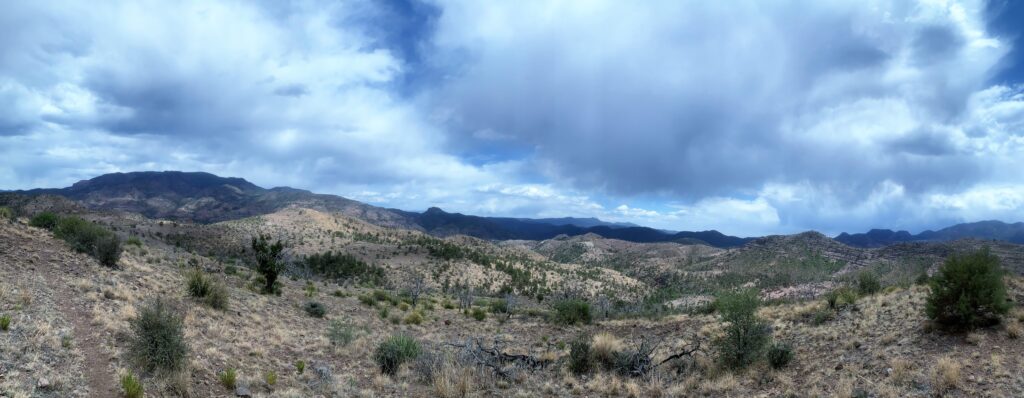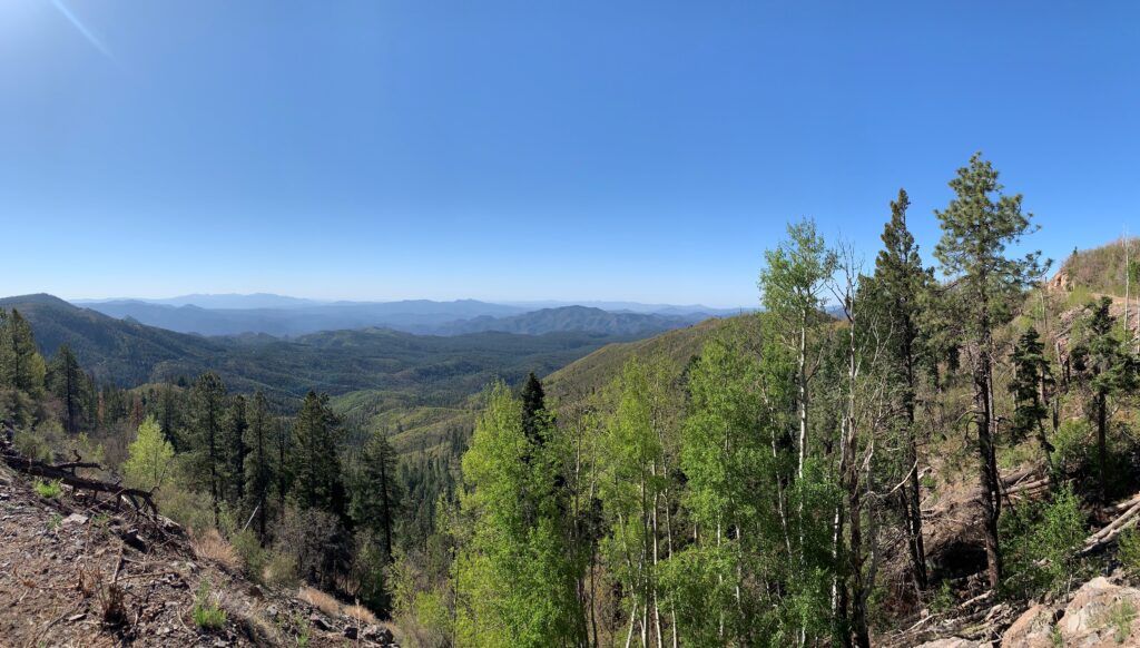 I got dropped off where I left off on FR25. So to maintain my continuous footpath on this journey, I decided to walk down Highway 191, otherwise known as the Coronado Trail, for about six miles to Strayhorse CG and rejoin the MRT. Only three cars went by so it was like having my own paved pathway with great, expansive views.