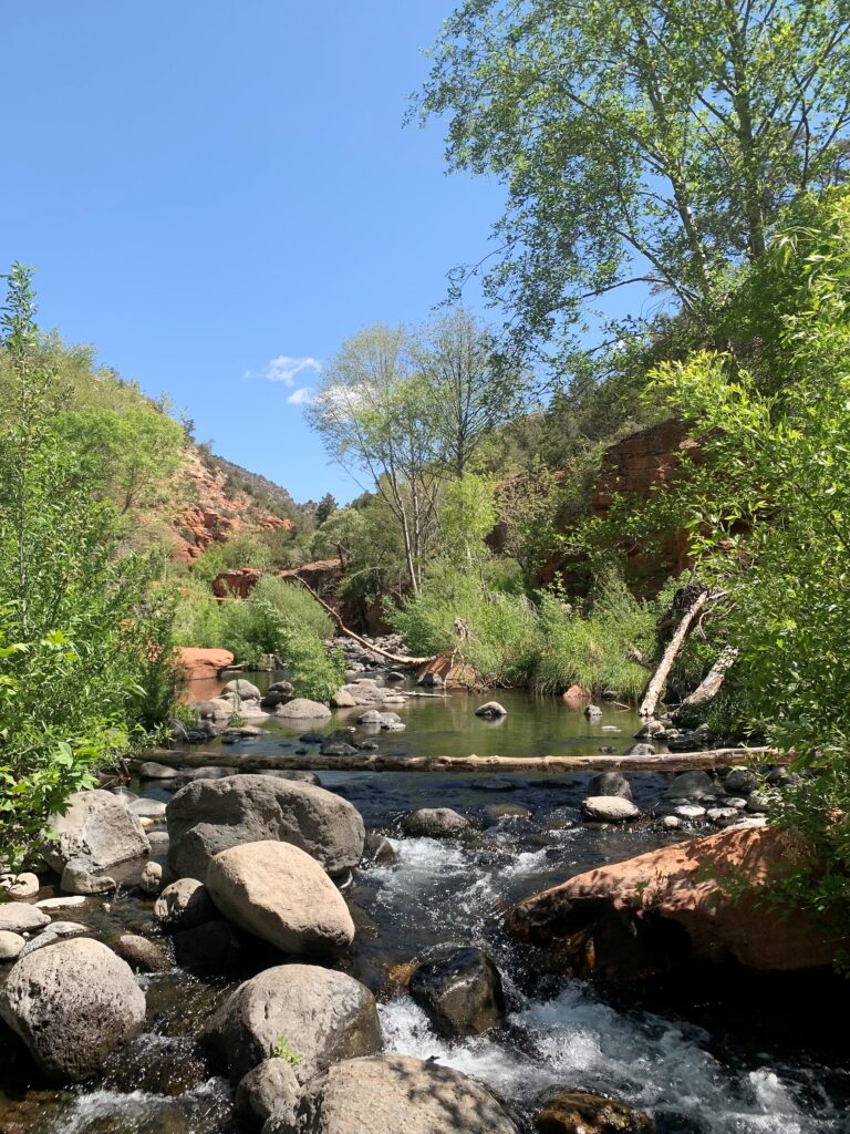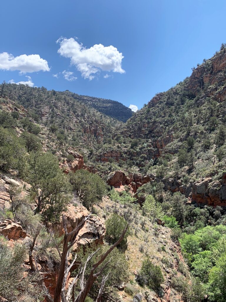 I took a combination of dirt roads and then the Apache Maid Trail on top of the Rim. Another six miles got me to the edge of the canyon for Wet Beaver Creek. Then a two-mile switchbacked descent to join Bell Trail and a short hike upstream to the Wet Beaver Creek crossing.