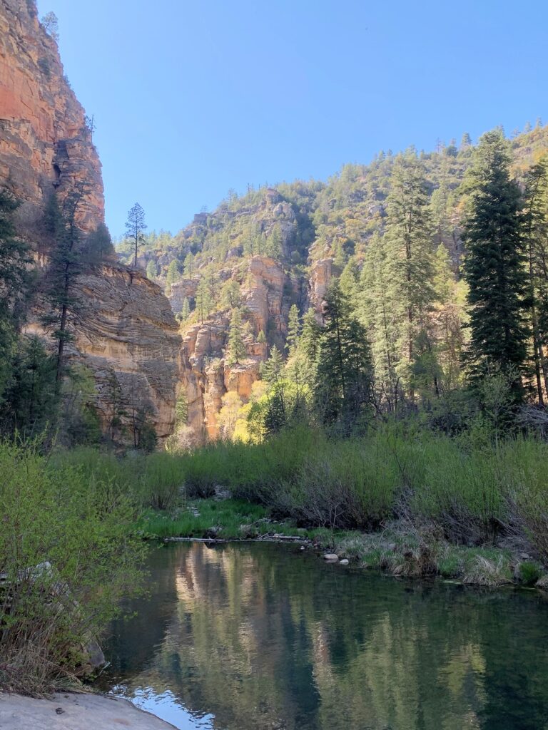 A clear, sunny and mostly cool day hiking across the juniper and pinyon flats for about 15 miles to the edge of West Clear Creek Canyon. I listened to an audio book for a bit more excitement. A large herd of elk ran single file across the trail in front of me. The pine trees got larger and the forest more dense as I got closer to the edge of the canyon. I did make note of a stock tank with the best name. Dirty Name Tank had a bit of very dirty water.