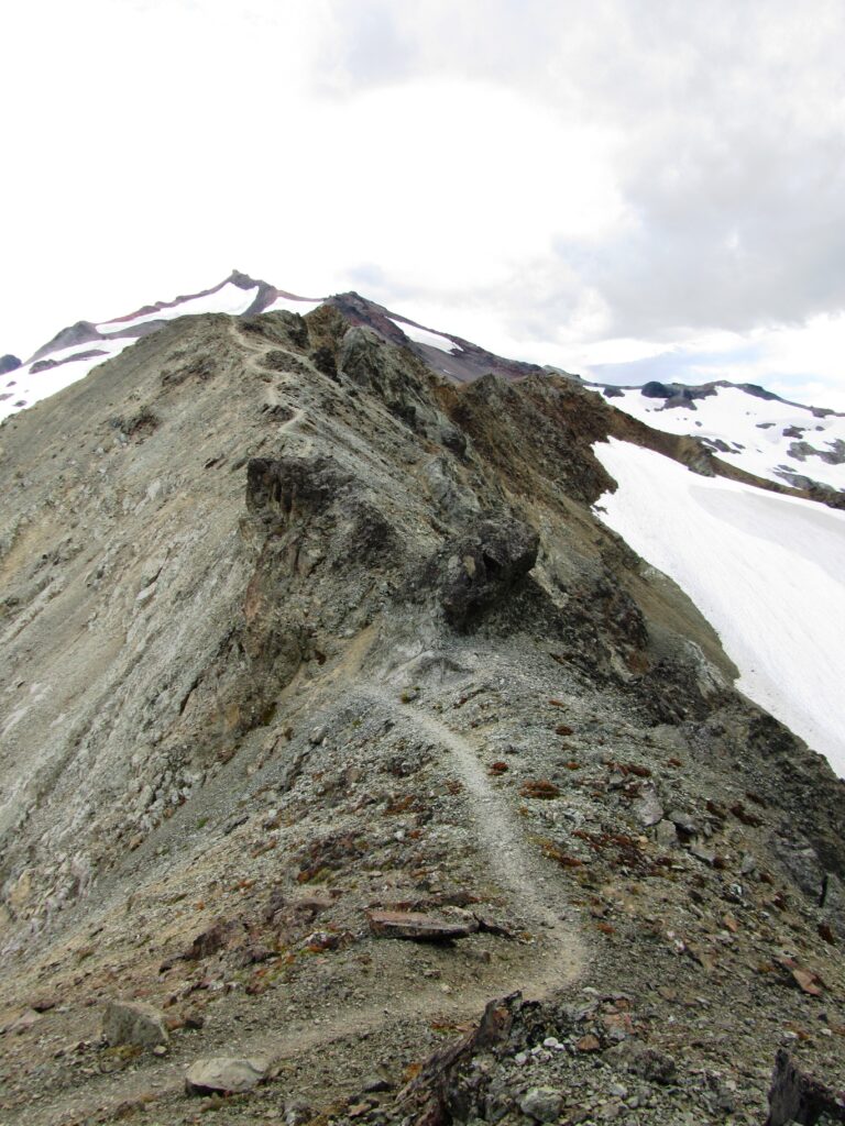 The trail is crazy ridiculous in a good but treacherous way. On steep ridges, some parts just wide enough for a trail, and high above glaciated canyons. The name “Knife’s Edge” is very fitting.