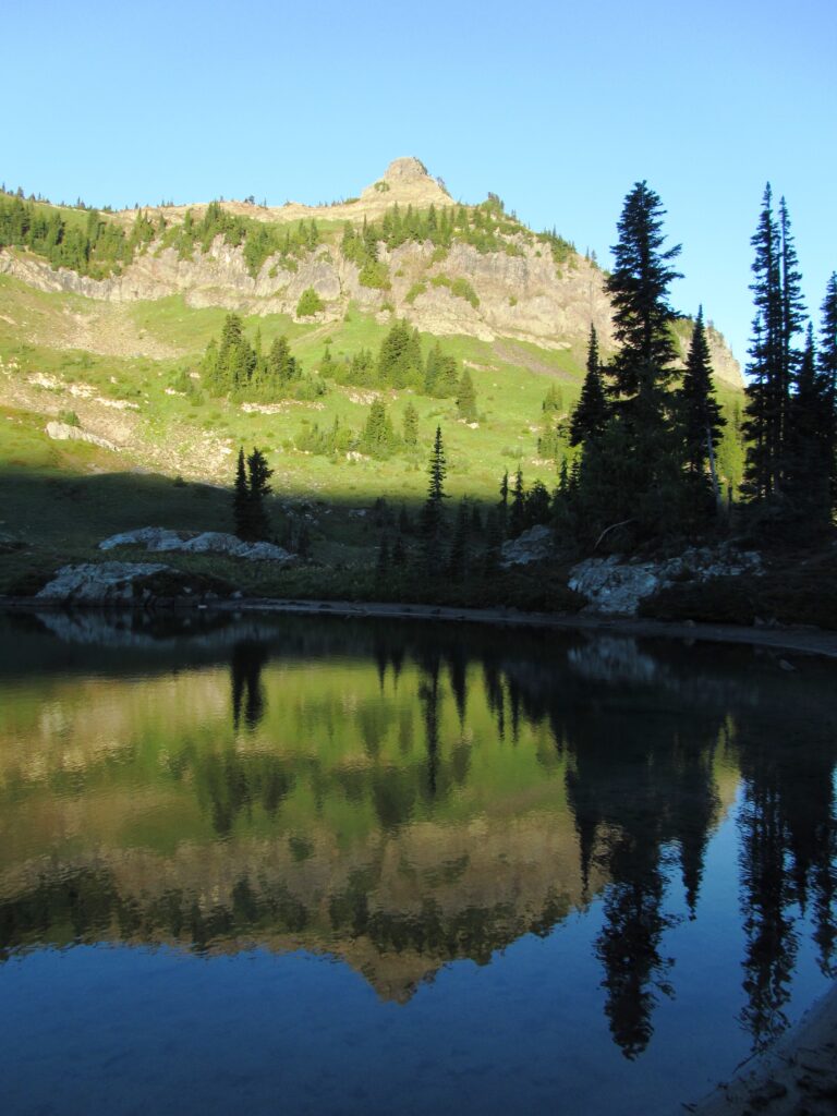 This gave me a burst of energy to put in another five miles, much of it through an old burn area. I surprised a cow elk on the trail – I had heard a bunch of elk crashing down the mountain earlier and this one got separated from the herd. I had to put on the headlamp for the last mile.