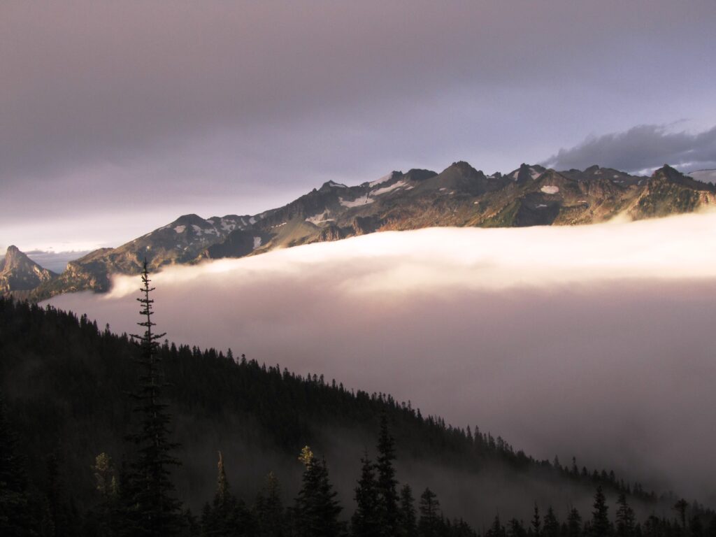 A gradual rise to Deception Lake and Piper Pass put me above the fog bank.