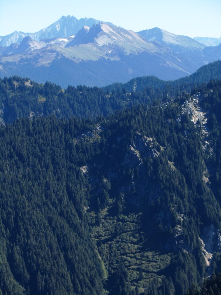 Contoured around some boulder fields and creeks and started the long descent to Suiattle River. I later joining Iceman and Cattywampus high above the roaring river.