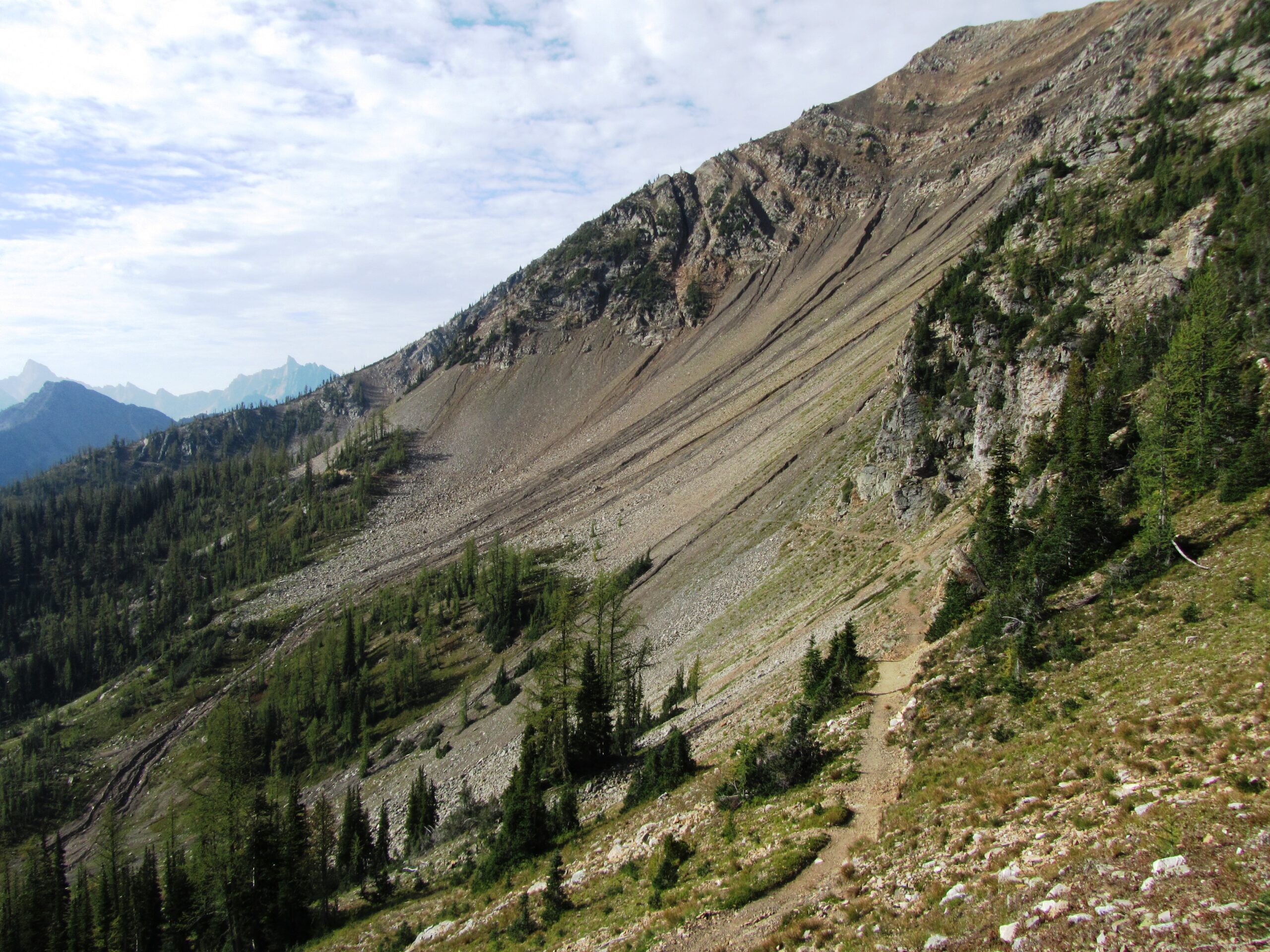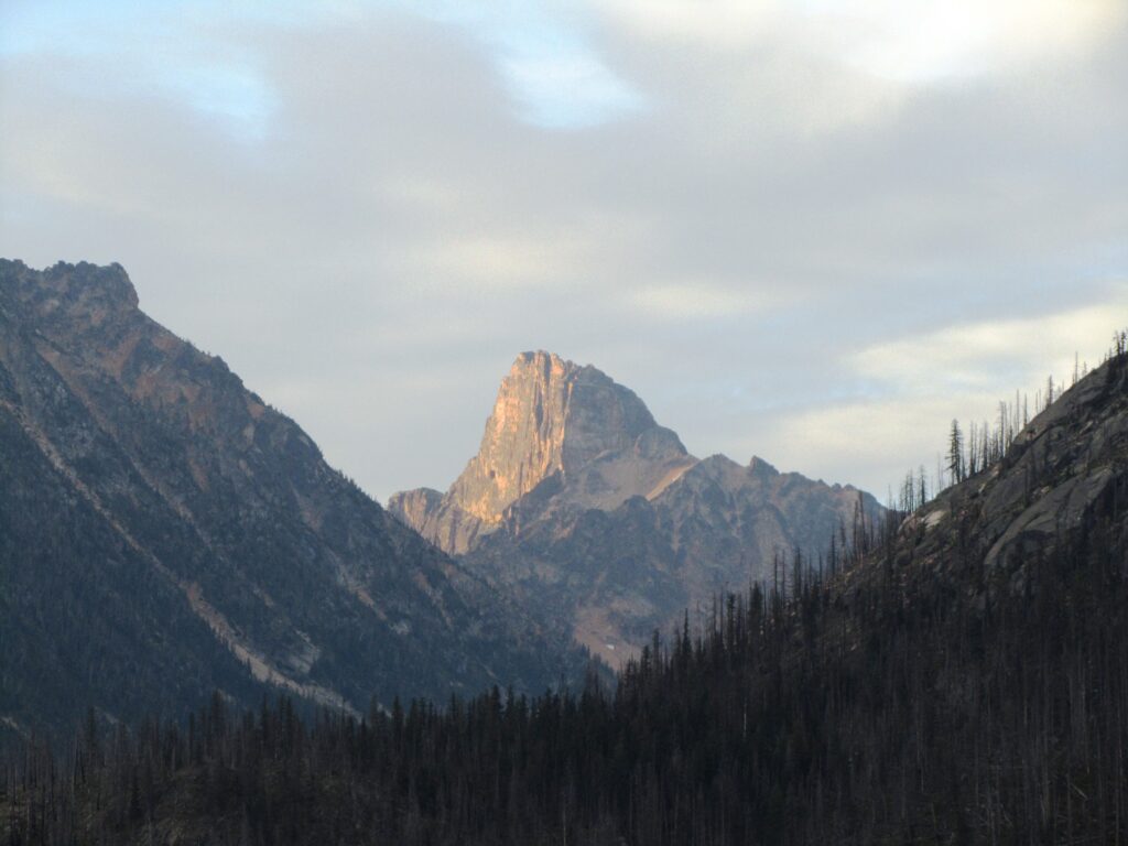 The morning started with a climb up Brush Creek Canyon to Glacier Pass. Then another uphill push up several switchbacks to a high ridge below Tatie Peak. Great views of the North Cascades.