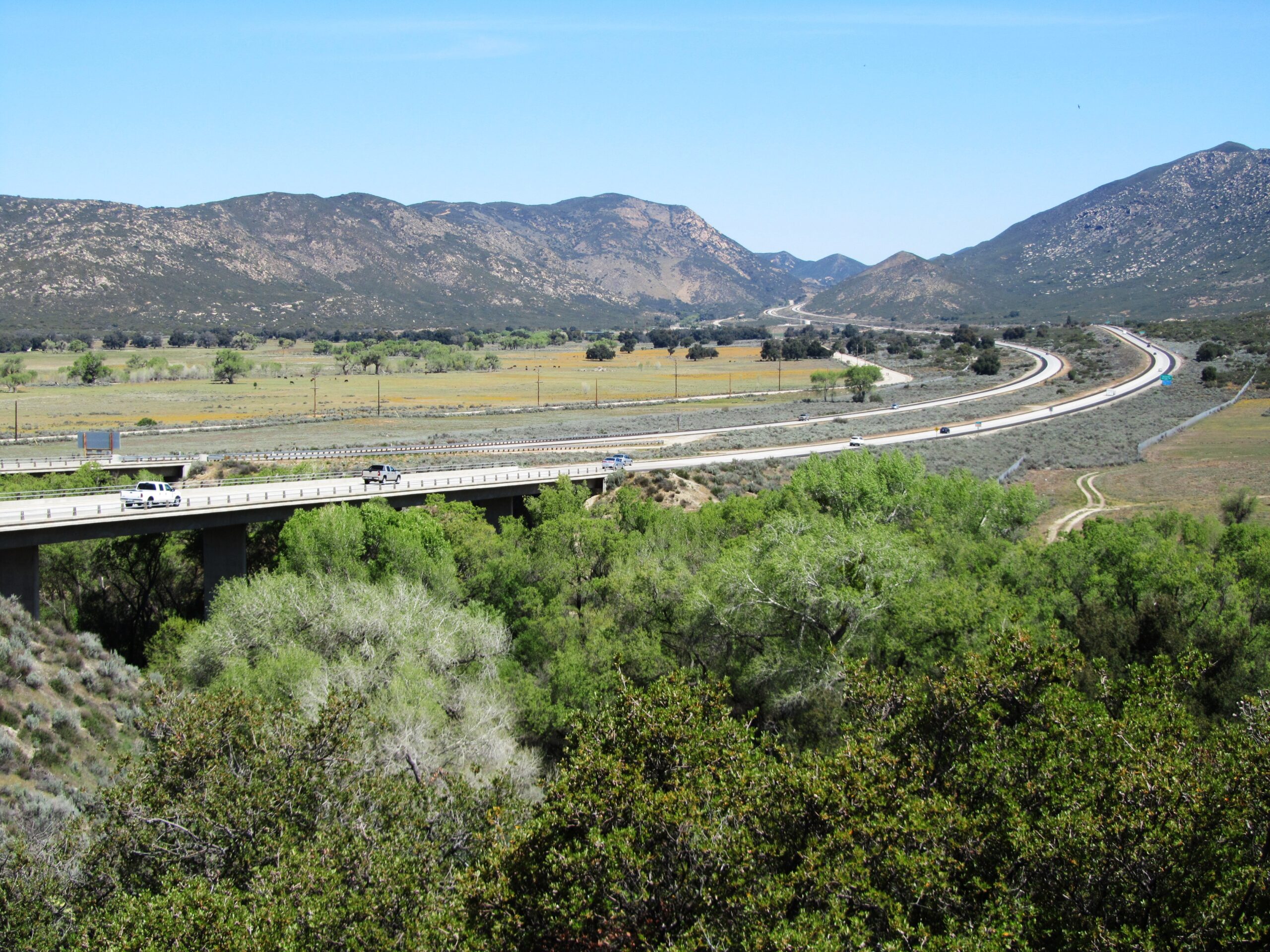 Cool morning but warming up fast as I crossed under the bridge at I-8 which we had driven over at about 80mph the day before yesterday. Saw my first buck naked day hiker after lunch coming from the opposite direction. Who has right-of-way?
