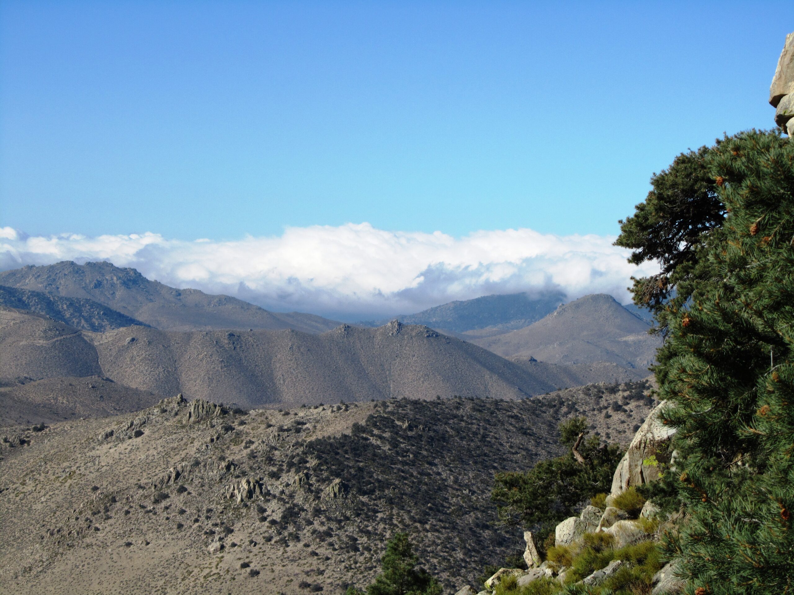 Another much appreciated water cache (thanks Mary!) at Bird Spring Pass before entering Sequoia National Forest and climbing to 7,000 ft. The wind still blowing but trees gave some protection.