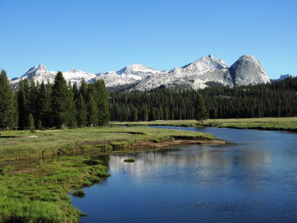 I climbed up through granite rocks and some snow to Donahue Pass at 11,056 ft and entered Yosemite Wilderness. A long descent through forested and then meadowed Lyell Canyon and creek all the way to Tuolumne Meadows.
