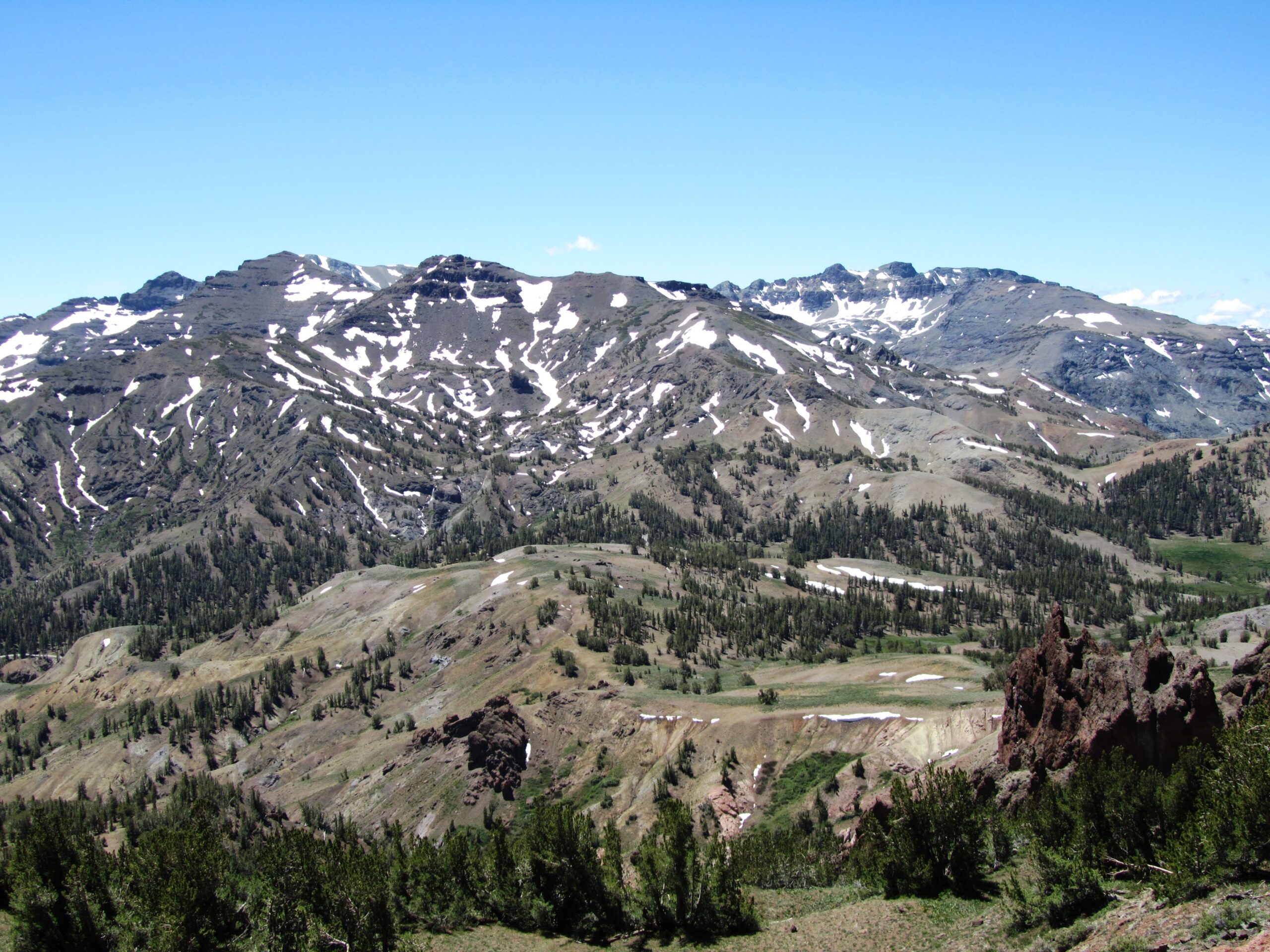 The trail entered the Carson-Iceberg Wilderness and I climbed to a ridge crest on the north side of Sonora Pass. Great views of the volcanic peaks and pinnacles.