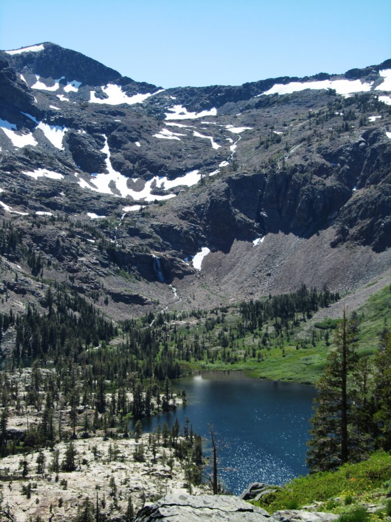 I passed by several more lakes gouged out by glaciers through the day. Tempted to take a dip on this warm day but kept moving. Late in the afternoon, I climbed up to Dicks Pass with even more great views of the Desolation Wilderness.