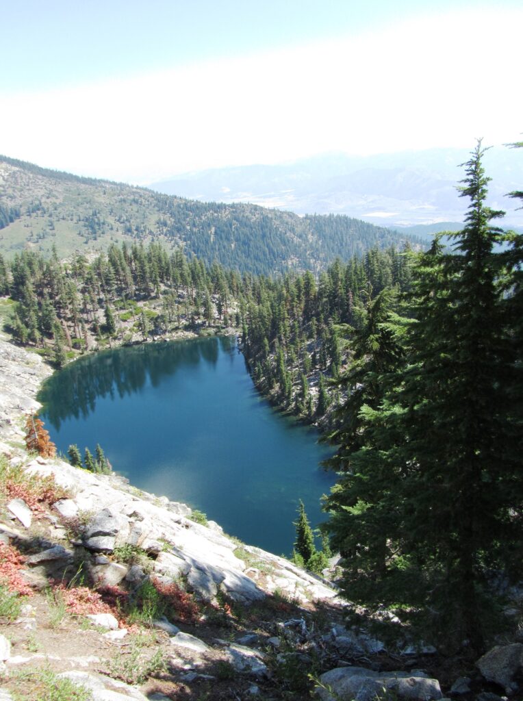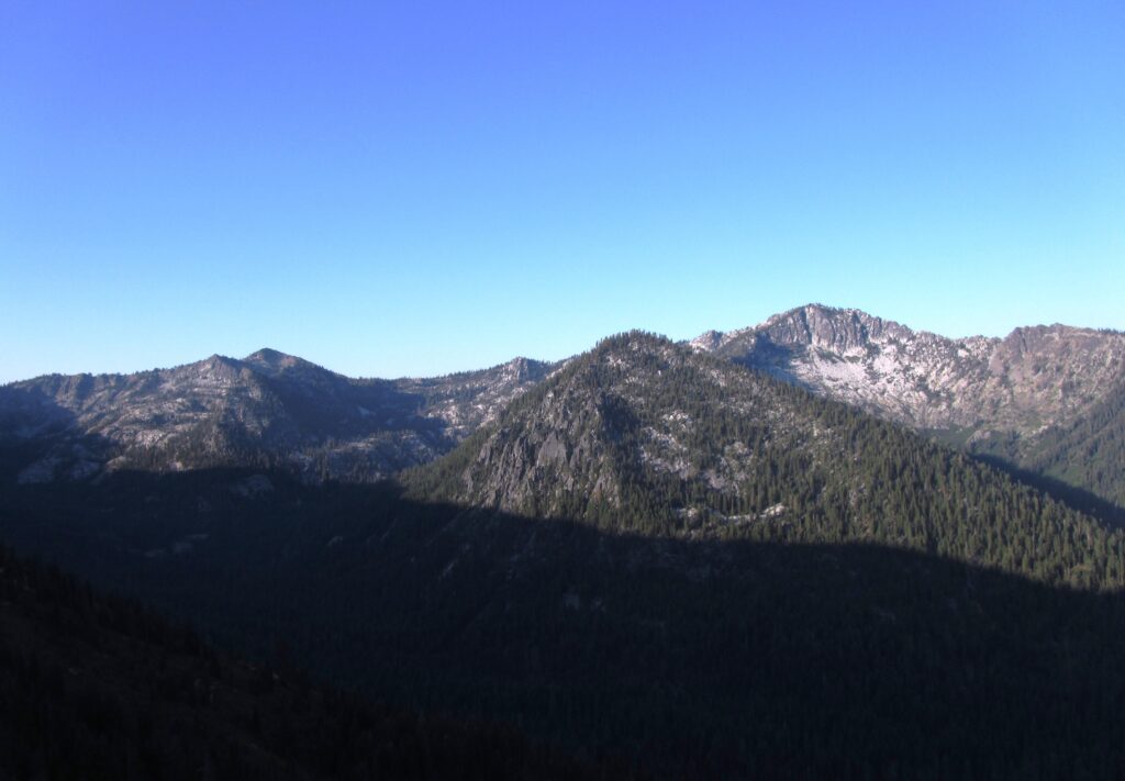 Nice views of sheer granite walls heading down South Russian Creek Canyon. I turned up and hiked over another ridge, passing scenic Payne’s Lake along the way. Good views of Mt Shasta and on into Oregon from the high point.