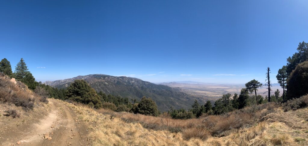 From Tripp Canyon, I took the Sawmill-Blue Jay alternative, a steady climb to get me to the Clark Peak Trail. This route allowed me to get much needed water at Sawmill Spring. It did not disappoint – cold and clear right out of the pipe. The Clark Peak Trail took me down to Taylor Pass, in a saddle between Clark Peak and Blue Jay Peak. I decided to call it a day. All in all, well over 4,000 ft elevation gain with more tomorrow.