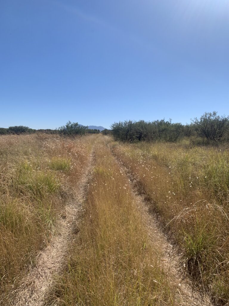 The SKIT route then veered off to stay closer to the San Pedro. This started a frustrating and painful two miles of wading through 4 ft tall grass and Russian thistle (tumbleweeds). I couldn’t see my feet through much of it was covered with sharp burrs. If ever a need for snake gaiters, this was it. Either I lost the trail or the game trails have been overgrown with the heavy monsoon season.