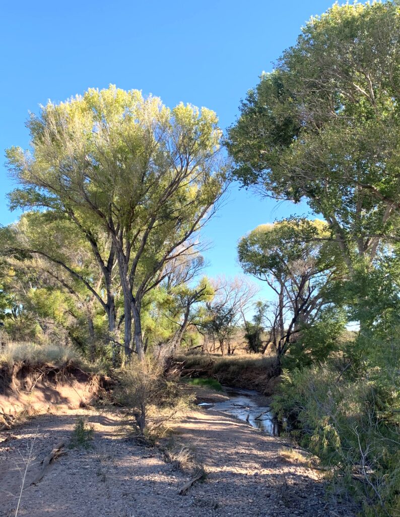 I headed out on a bright, sunny morning on a sometimes weed-choked trail. My first destination was the San Pedro House, an historic ranch house restored by the Friends of the San Pedro River. After chatting with the caretaker for a few minutes, I filled up my water bottles and returned to the banks of the river on a well-groomed trail.